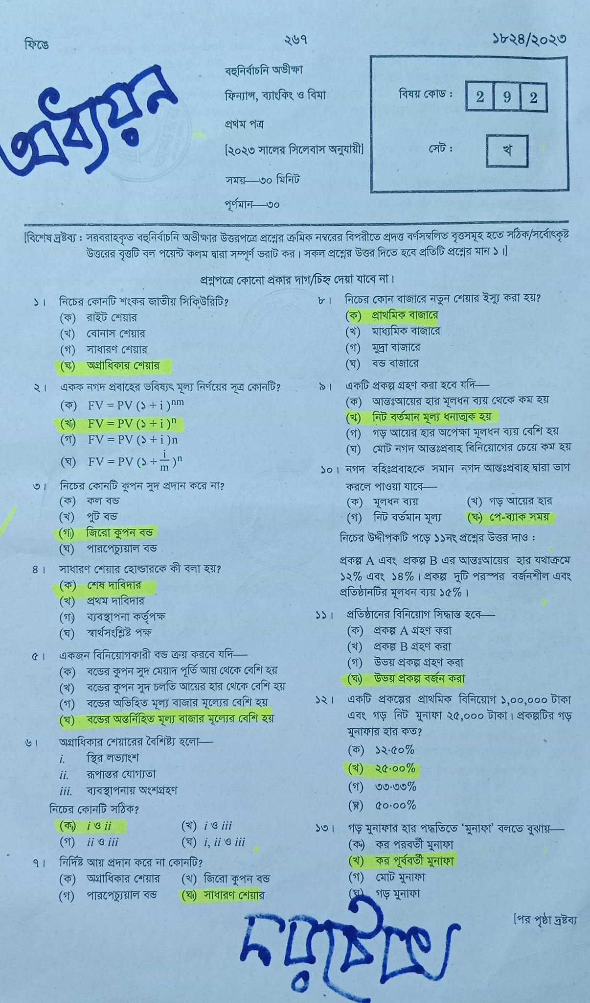 HSC Means Higher Secondary Certificate Exam, Finance Banking and Insurance 1st Paper Means Finance Banking O Bima Prothom Potro and MCQ means Multiple-Choice Question. In this post you will find HSC Finance Banking and Insurance 1st Paper Question Solve 2023. Finance Banking and Insurance 1st Paper Subject Code is 292. In this exam students have to Answer 30 Marks MCQ Questions within 30 Minutes. Students have to Carefully fill up the OMR sheet with Exam Year, Roll Number, Registration Number, Subject Code, Set Code & Correct Answer.