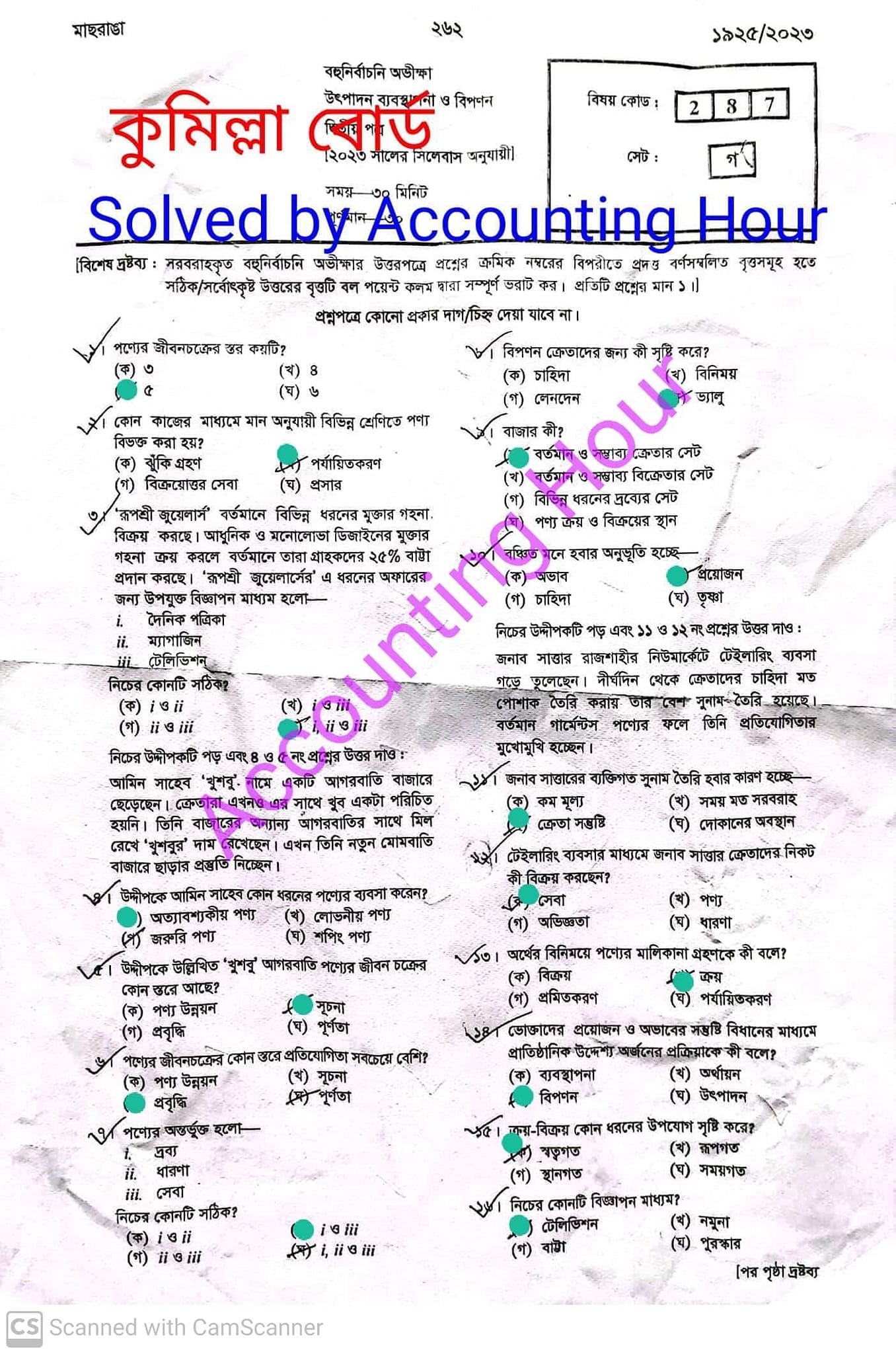 Brahmanbaria, Chandpur, Comilla, Feni, Lakshmipur, Noakhali District under Cumilla Education Board. So, If you are from these 6 Districts then your Cumilla Board Production Management and Marketing 2nd Paper MCQ Question Answer of HSC Exam 2023 will be found here.