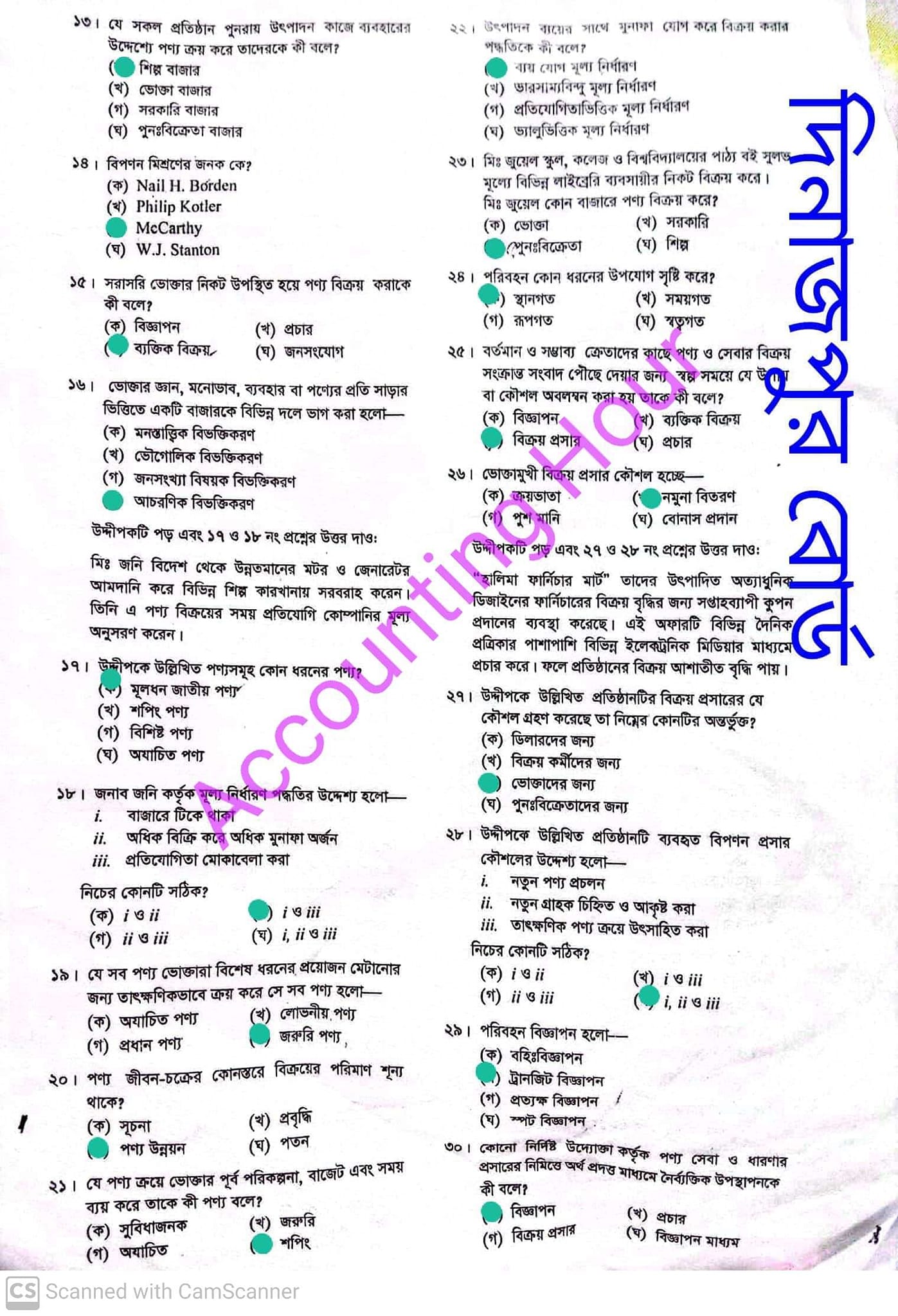 Production Management and Marketing 2nd Paper MCQ Question solution Dinajpur Board HSC 2023
