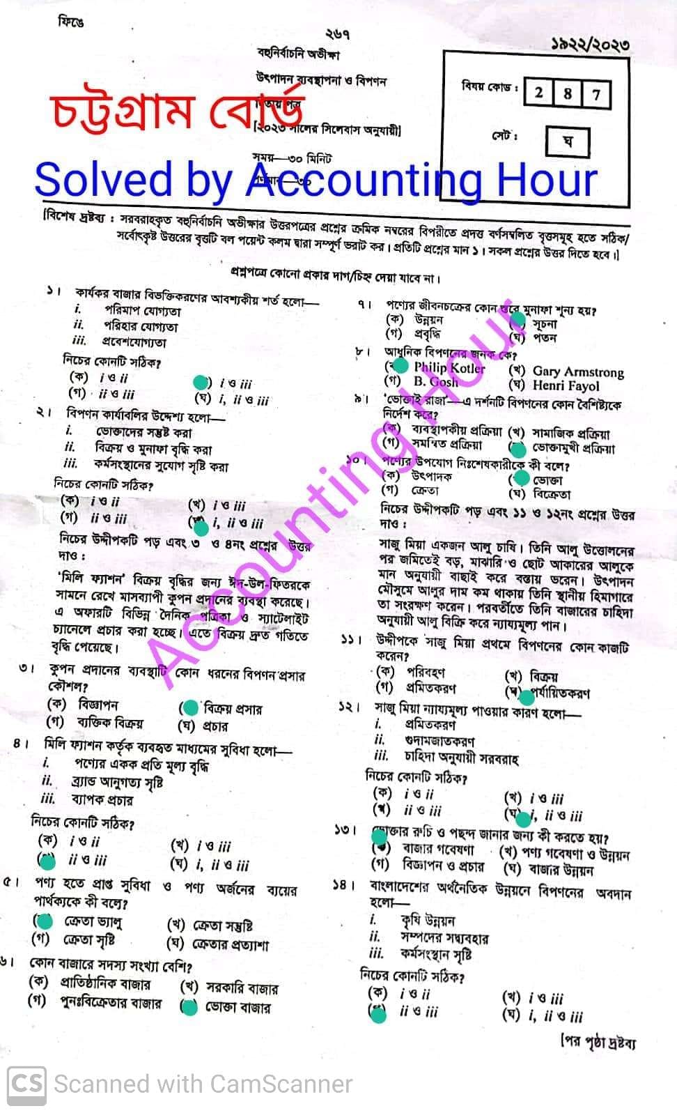 Production Management and Marketing 2nd Paper MCQ Question With Answers 2023 Chittagong Board HSC 2023