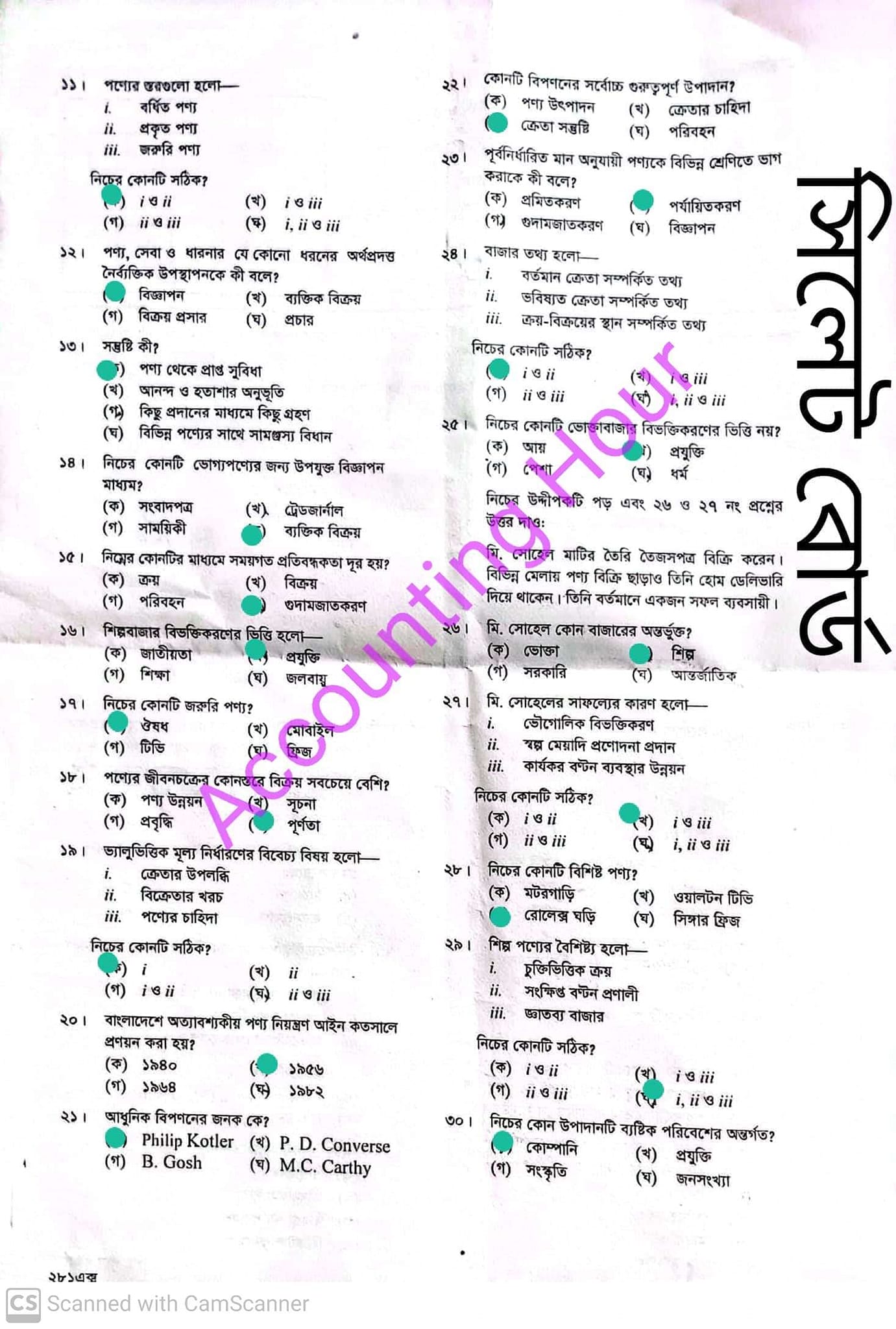 Production Management and Marketing 2nd Paper MCQ Exam Question Solution Sylhet Board HSC 2023