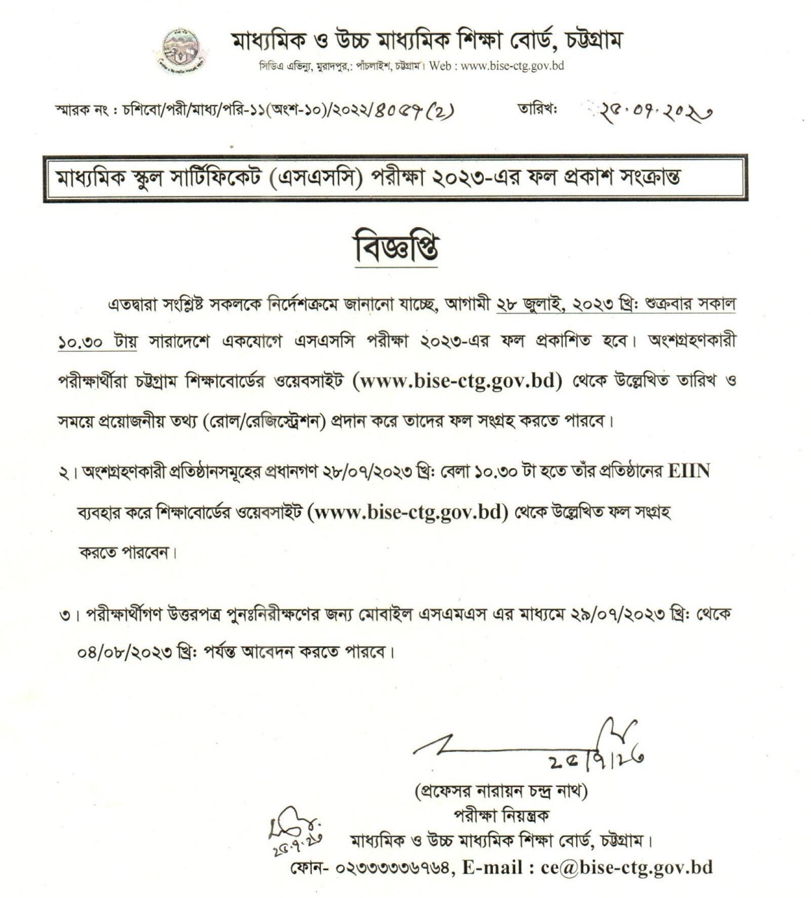 Chittagong Board SSC result 2023 Will be published on 28 July at 10:30 AM.