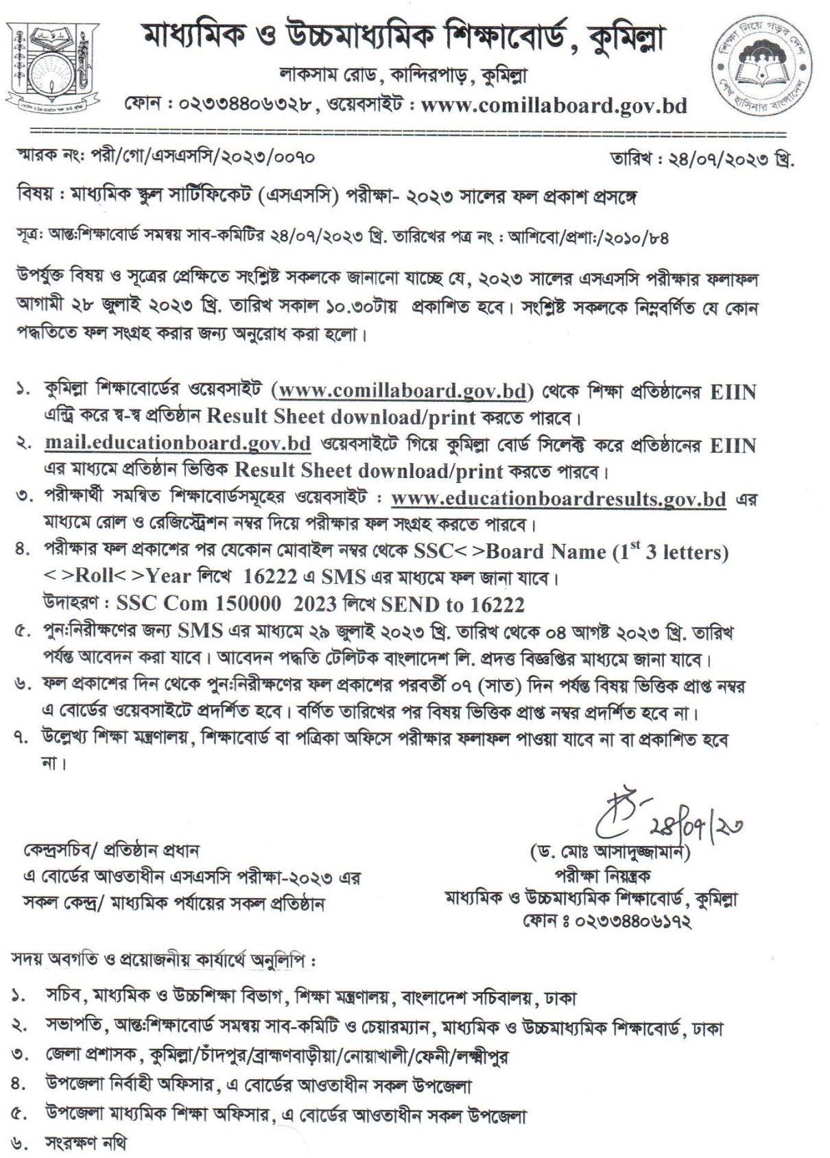 SSC result 2023 Comilla Board Notice