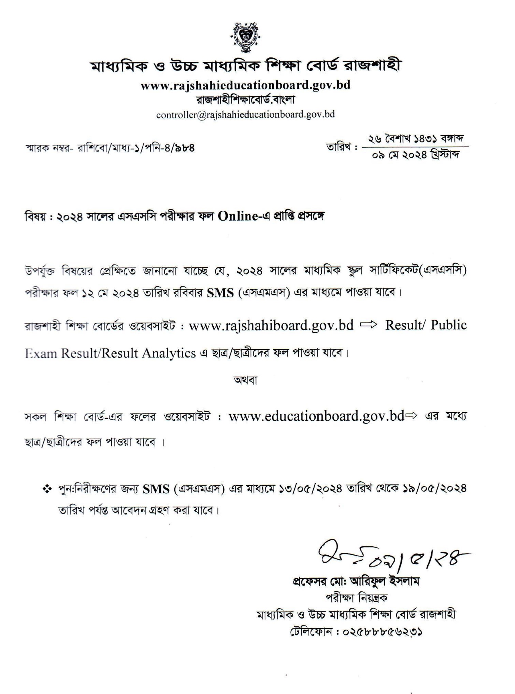 Rajshahi Board of Intermediate and Secondary Education SSC exam result related notice will be published here. From the notice you can be notified about all the necessary information about Rajshahi Board SSC result 2024. So keep visiting on our website regularly to get the notice.